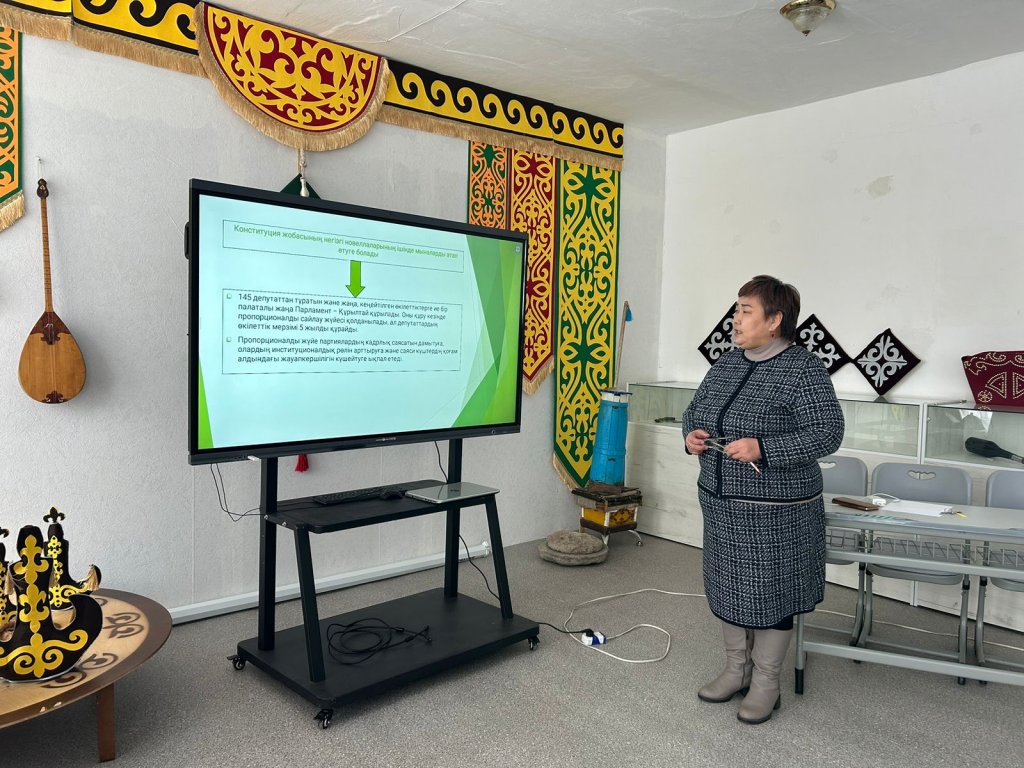 Мектеп директоры Лалагүл Қабдоллақызы конституциялық нормаларды түсіндіріп, ақпарат берді.